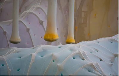 I had dinner with my friend Leslie in Manhattan on Sunday night. Leslie, being always in the know, pointed me toward an installation at the Park Avenue Armory. On exhibit there is a site specific installation by Ernesto Neto, a contemporary Brazilian artist. I just learned that he is inspired by the neo-concretism movement who "wanted to equate art with living organisms in a kind of organic architecture, and invite the viewer to be an active participant." Neto's installation at the Armory is exactly that.