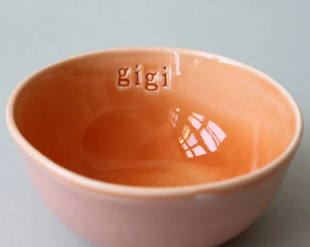 A wedding gift with the couple’s initials on the two larger bowls, and their daughter’s initials on the smallest.