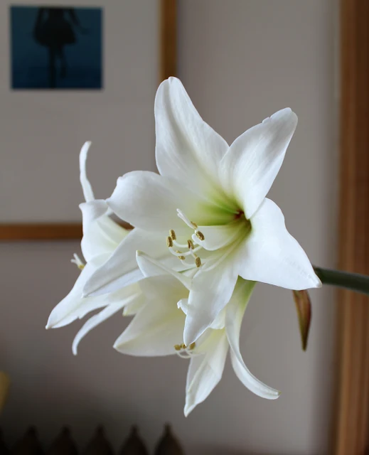My friend Susie gave me an amaryllis bulb two years ago, it bloomed, it was beautiful, and then it was done. The foliage remained, and I kept watering it for the next year and a half. A few months ago, I gave up watering it, and cut off all the foliage. The bulb seemed to have dried up and I stuck it in a corner. As I was passing that corner about a month later, I saw that the bulb sprung forth a bud.